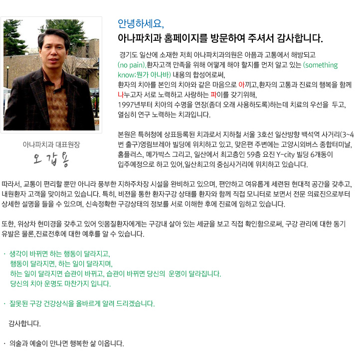 아나파치과의원/오갑용/사업자등록번호 128-90-05245/전화 031~902~2875/팩스 031~908~2826